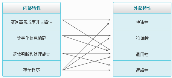 将高速开关器件与存储程序结构原理相结合,产生计算机的快速性。数字化信息编码和存储程序结构原理的结合,产生计算机的通用性、准确性和逻辑性。