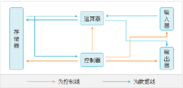 控制器用于对存储程序进行控制。通常人们将运算器和控制器统称为中央处理器(CPU)。