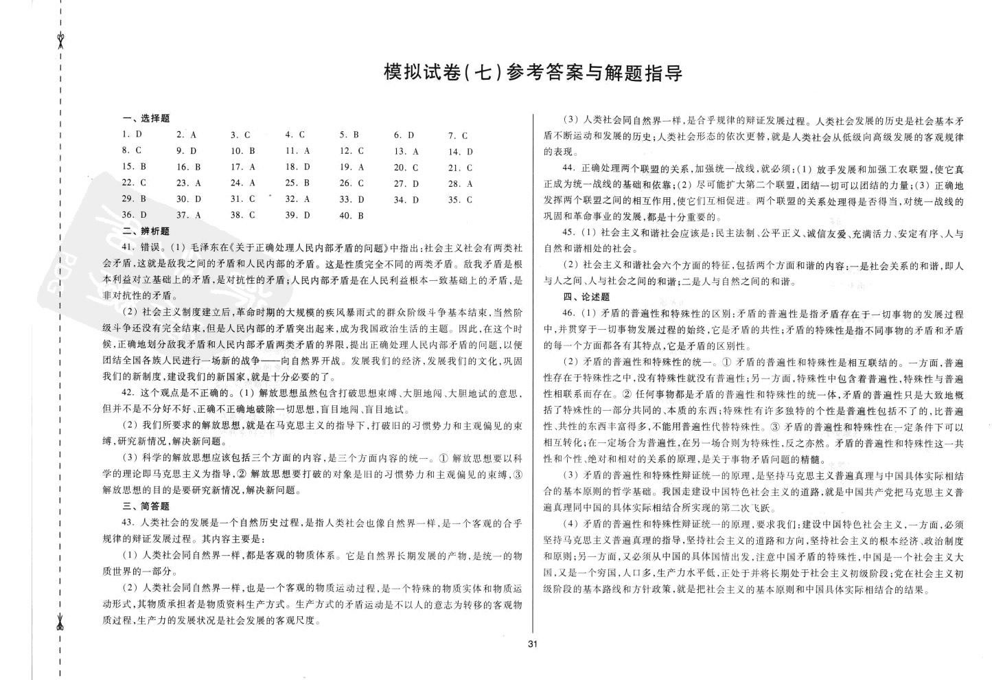 河南成人高考培训辅导班独家发行的第七套专升本《政治》科目模拟试卷及答案解析