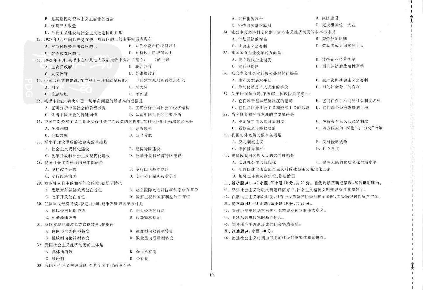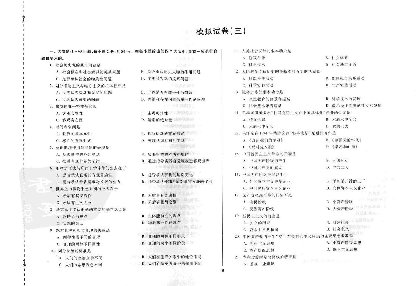 河南成人高考专升本考试科目《政治》第三套模拟试卷真题及答案解析