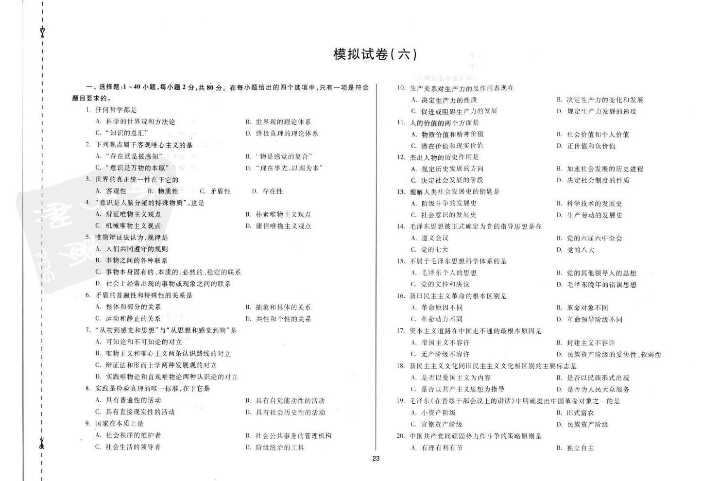 河南省郑州市成人高考专升本考试科目《政治》第六套模拟试卷真题及参考答案