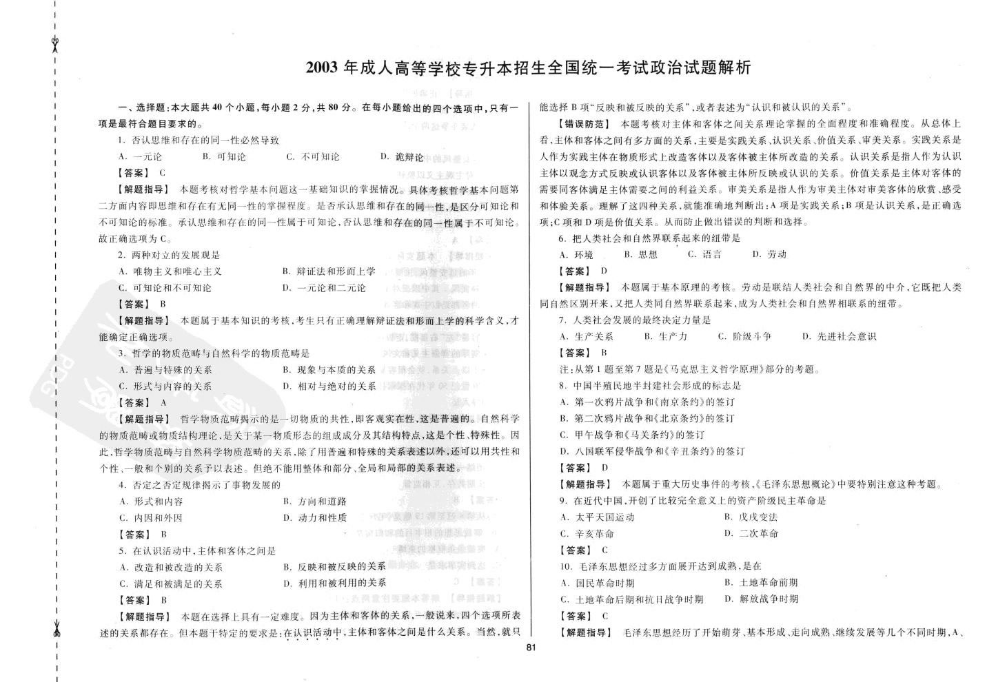 河南成人高考专升本《政治》考试科目试卷答题方法与题型剖析【五】