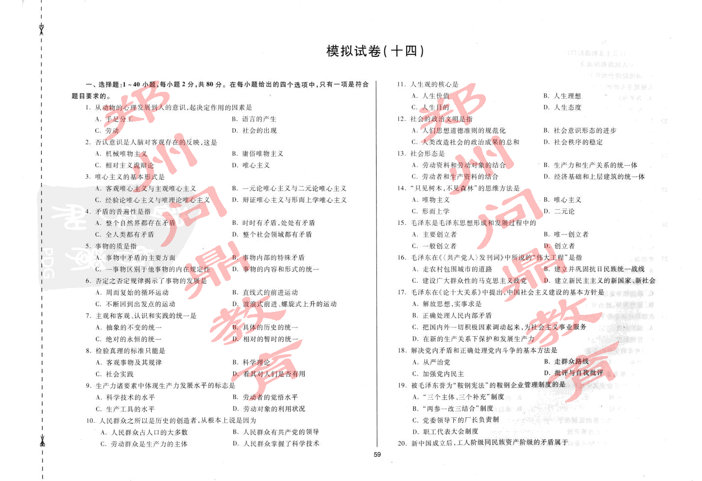 第十四套河南成人高考本科考试科目《政治》模拟试卷--由郑州问鼎教育提供!本套试卷答案及解题技巧请参考本篇文章最后的相关阅读!