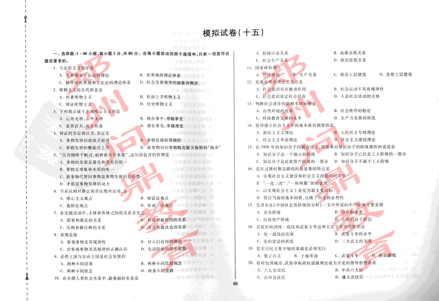 第十四套政治模拟试卷试题与答案前两日都已发布过,各位同学,你们做对了吗?今天,中原高校网刘老师将继续为各位同学发布河南成人高考专升本考试科目《政治》第十五套模拟试卷的试题。