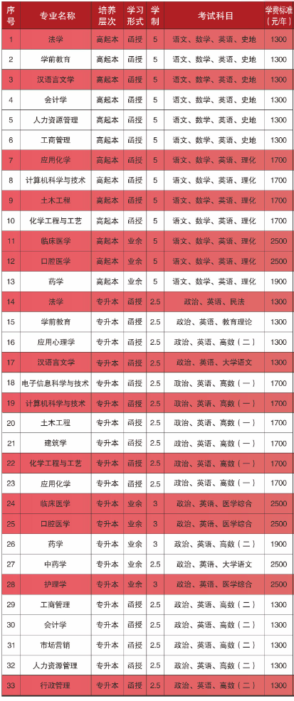 | 高升专 | 文史类 | 函授 | 1100 | 2.5年 |