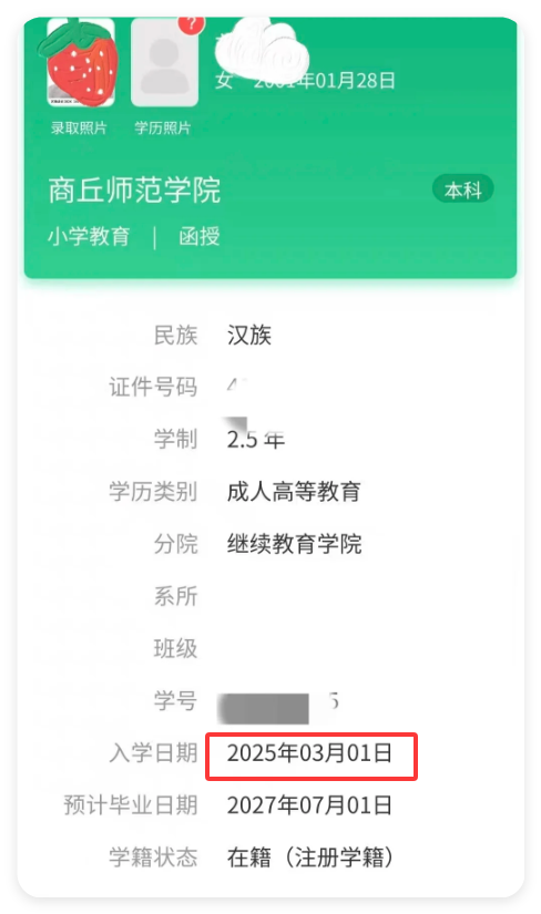 商丘师范学院2025级成人高考新生学籍已注册,报考了这个学校的同学,可以登录学信网查询自己的学籍了,学籍有几个重点大家注意,下面给大家讲解一下具体查询的方法。