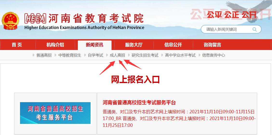 焦作成人高考报名入口 成人高考报考是在招生办公室统一[详情]