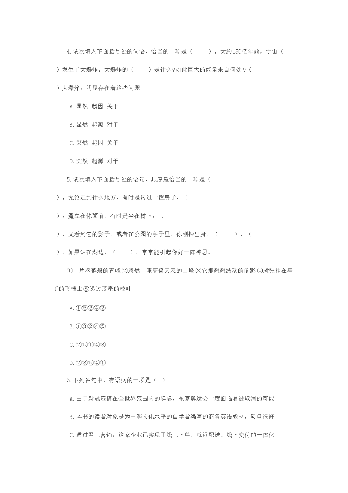 2019年成人高考高起点《语文》模