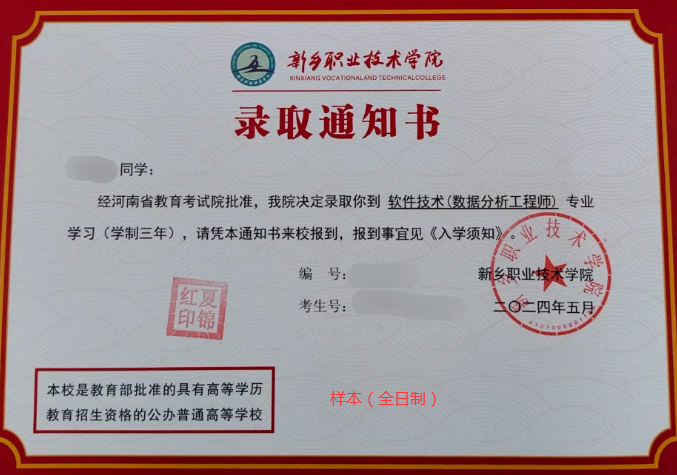 七、2025新乡职业技术学院成人高考录取通知书(参考2024年)
