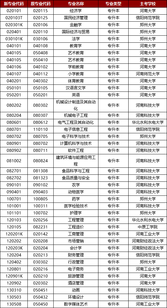 河南自考本科招生专业及主考院校(2025年公布)